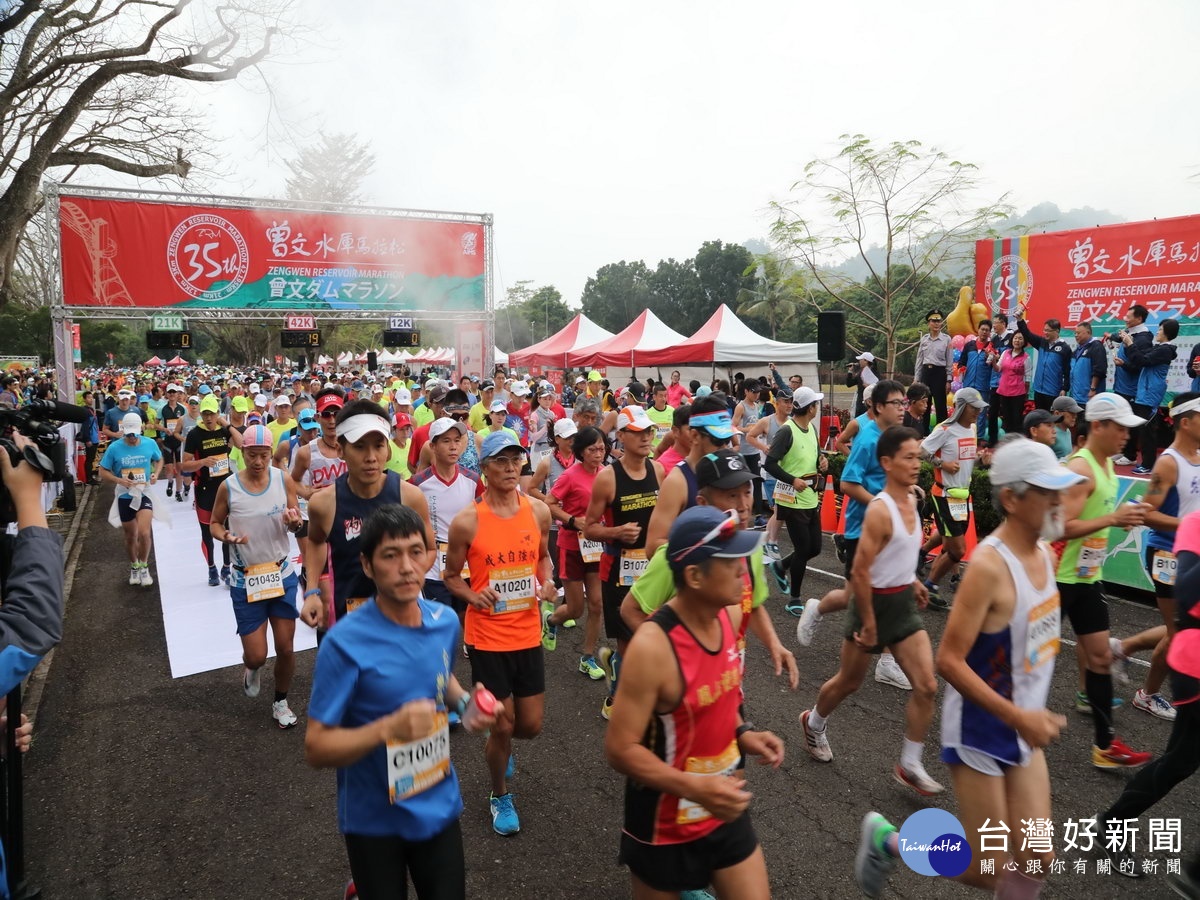 由台南市政府與中華民國田徑協會共同主辦的第35屆曾文水庫馬拉松賽,9日上午7點在曾文水庫園區開跑。本次比賽分為全程馬拉松組(42.195公里)、21公里組、12公里路跑組及健康休閒組(3公里)等4組,報名全程馬拉松組有762人、21公里組1,001人、12公里組1,330人及健康休閒組575人,總計3,668人報名參加,其中最年長選手為路跑組82歲,年紀最小的是健康休閒組3歲,一同挑戰全國歷史最悠久的馬拉松活動。
