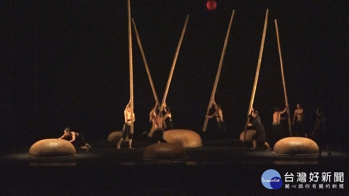 磅礡的樂聲,台上的表演者跟著音樂,舞動身體展現生命力,更利用竹編的巨型竹簍,長竹竿,變化出不同形式的舞步,來自越南的新馬戲劇團,利用越南最常見的竹子,演出村落如何走向現代生活的故事。