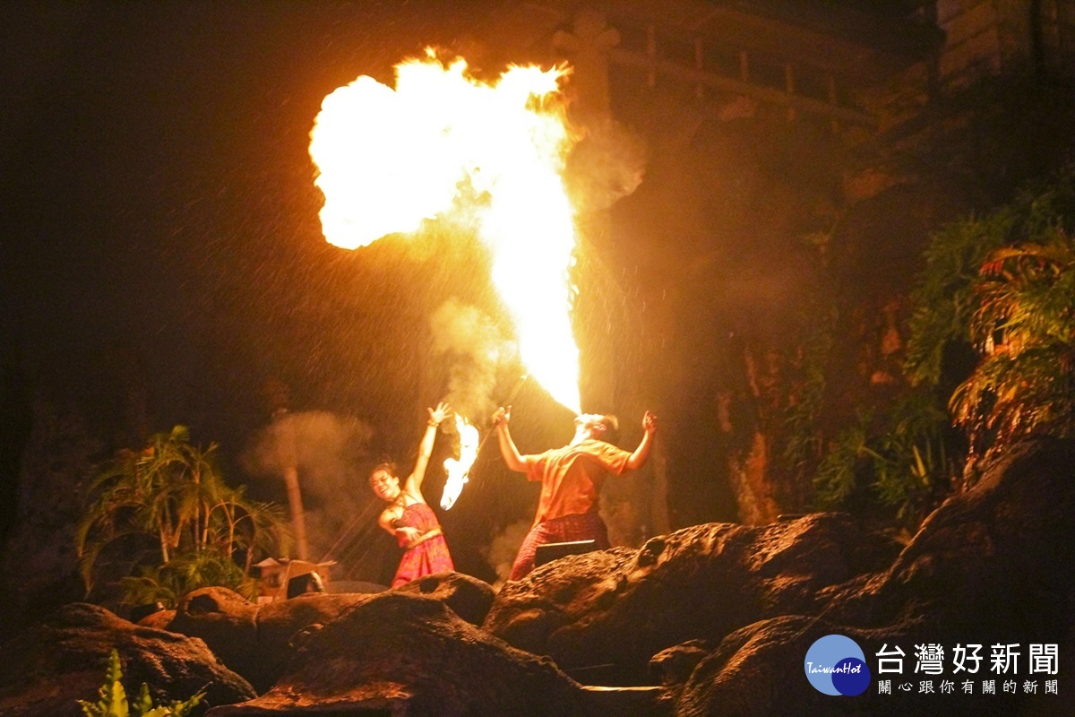 六福村行銷部經理葉益亨表示,夏日火焰舞是晚間限定的精采表演,就在火山歷險的山腳下上演,透過舞者精彩演出,引領遊客進入這個神秘火山島,遊客絕對難忘。
