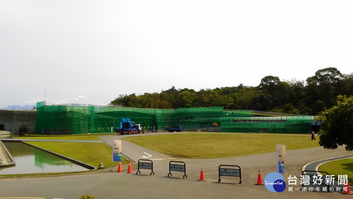 日月潭向山遊客中心外牆整修中。