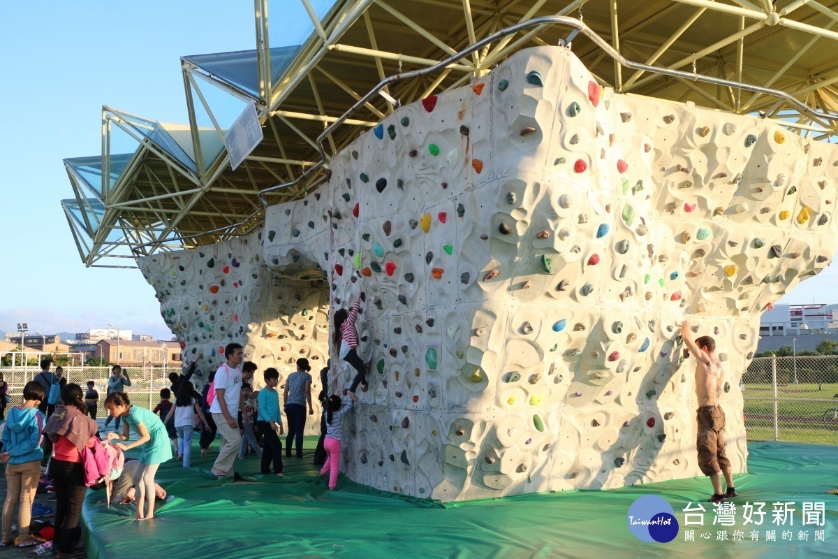 內湖運動公園有小朋友最愛的攀岩場(圖/台北市衛工處提供)