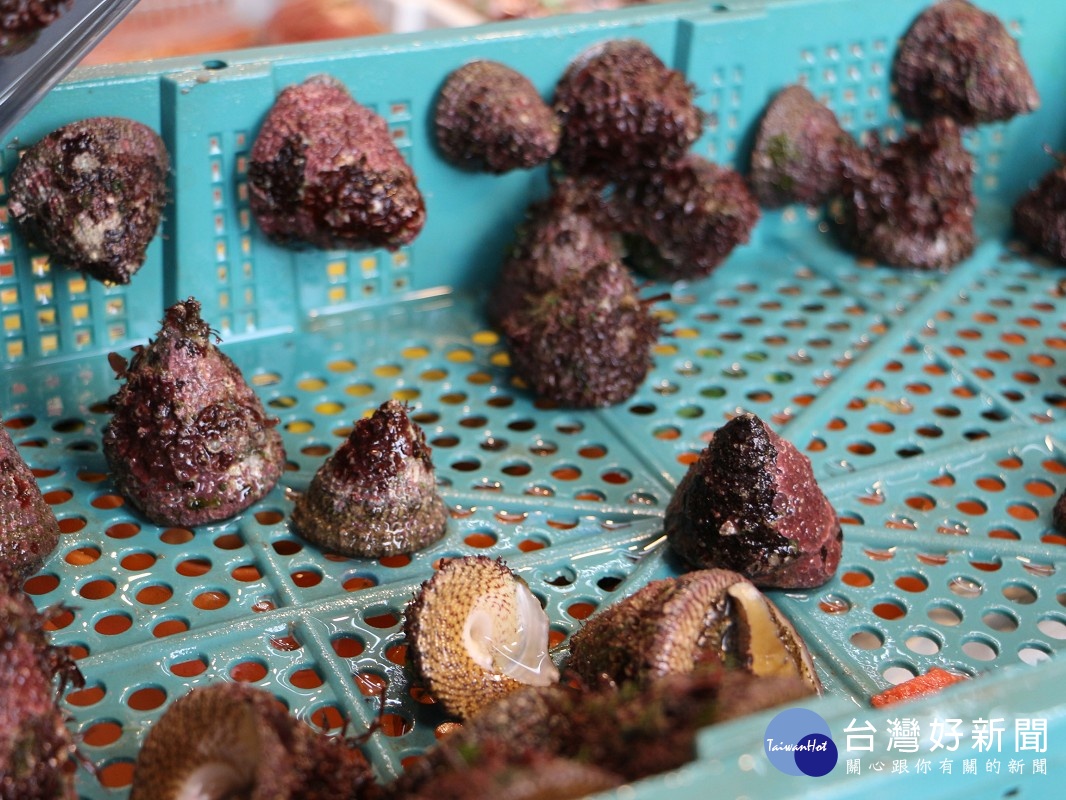 龜吼漁夫市集鐘螺,口感鮮脆,是北海岸常見的漁村美食,燒烤、涼拌、熱炒都很合適 。(圖/漁業處提供)
