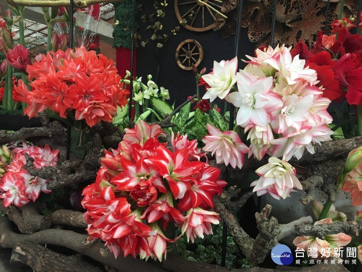 各色的孤挺花切花群聚像是許多喇叭吹奏春天的交響樂(圖/台北市公園處提供)