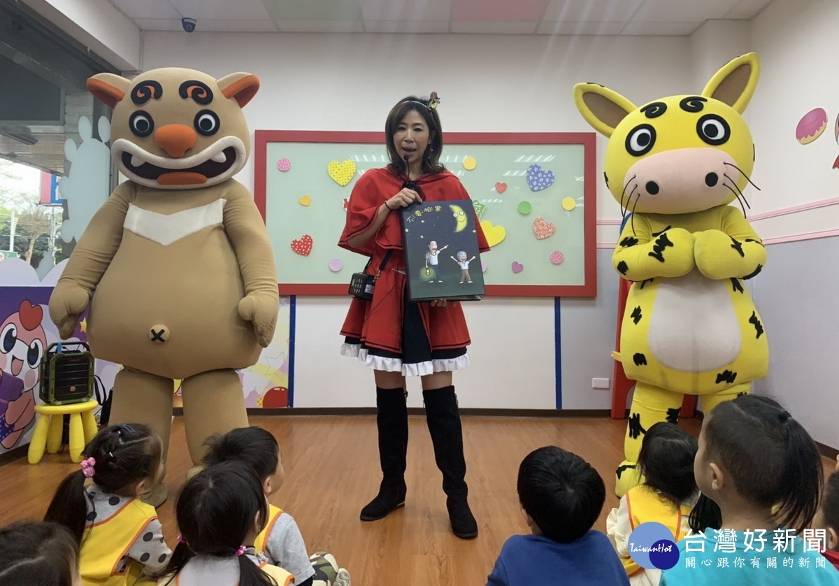 「妖怪兒童劇場」,由吉祥物枯麻、八豆擔綱,拍攝《不要害怕》系列幼教影片,2日展開巡迴演出,Maggie阿姨說故事,吸引孩子們專注聆聽。