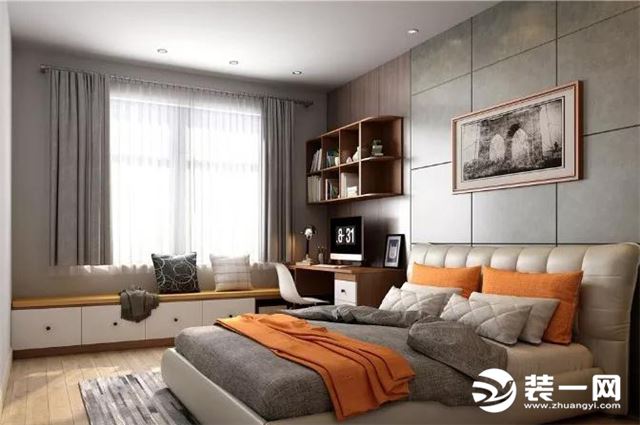 這款主卧空間空間不是很大,在窗戶下面打一排儲物櫃可以很好的進行衣物的收納,這樣即使是小空間的卧室也不會變的很亂。