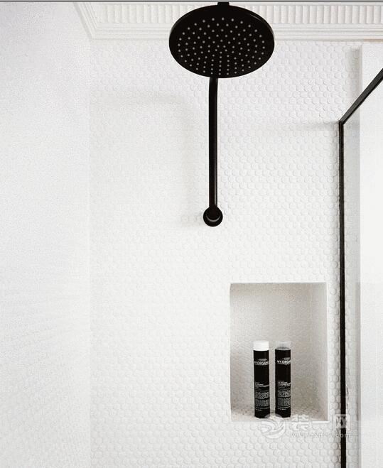 覺的大面積上牆壓抑,可以嘗試局部使用,比如在地面、淋浴區的壁龕、盥洗區的牆面小面積使用,從視覺上巧妙的劃分出不同功能區域,也給缺乏新意的衛浴空間一些活潑的氛圍感!