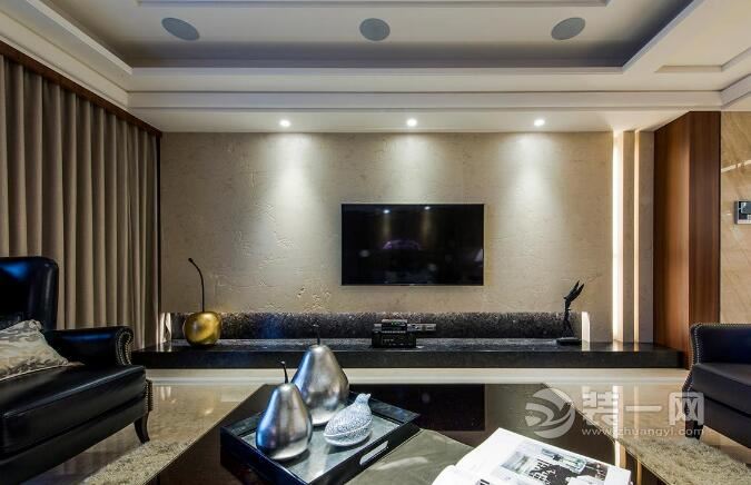 以法國米黃大理石打造的電視牆,表面呈現出獨特細緻的紋理,提升視覺立體層次感。裝修網的設計師看到,本身不算特別大的空間在設計師的打造下空間瞬間放大,擁有大宅的恢弘尺度。