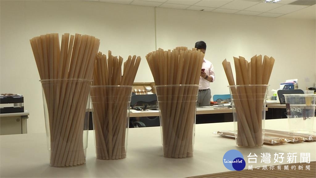 業者黃千鐘表示:「甘蔗渣可以拿來做為材料,做成這支吸管只要植物纖維,循環利用變成有用的材料來做成這些產品,溫度設計在55度它會型變,它雖然會變但它還是很安全,不會有任何物質釋出。」