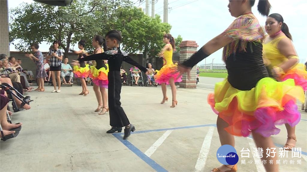 在安養院的大門廣場,來了一群孩子,賣力跳國標舞,動作精準好吸睛,長者坐在輪椅上仔細欣賞,是雲林的一間安養機構,蔡秀惠老師領軍的國標舞團隊,來安養機構和老人家們互動舞蹈帶動氣氛,也能發展輪椅舞,欣賞演出不需要花錢,這是公益表演,孩子也覺得很有意義。