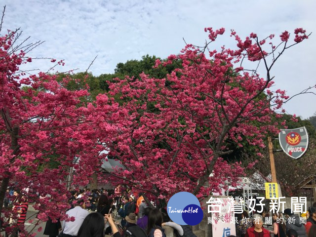 大甲警分局泰安派出所旁,舉辦23天的「2018后里泰安櫻花季」,吸引數十萬遊客參與,昨日終告閉幕,分局官方臉書上,不少民眾留言預約明年還要前來賞櫻。(記者陳榮昌攝)