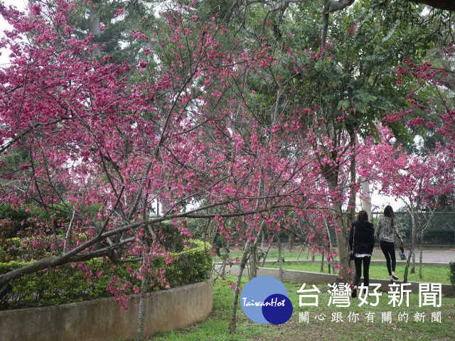 中市鐵砧山特定風景區,日本唐津扶輪社所種的櫻花盛開,桂花香四處飄逸,滿山鳥語花香,值得遊客上山一遊。(記者陳榮昌攝)