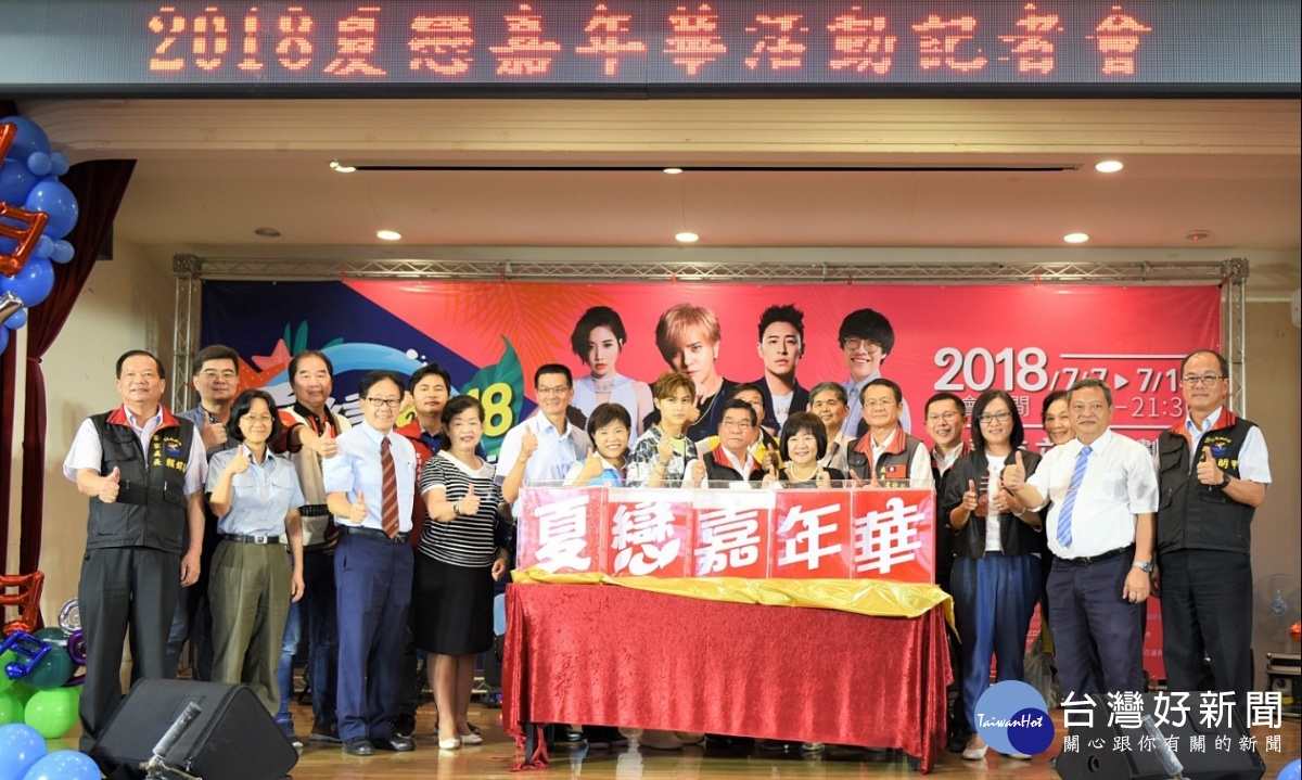花蓮縣政府3日於縣府大禮堂舉行「2018夏戀嘉年華」記者會,副縣長蔡運煌帶領多位產、官、學界貴賓共同為活動揭開序幕,現場也在客家鼓陣表演及偶像男神王子邱勝翊的演唱下迅速炒熱氣氛。暑假期間只要一張到花蓮的車票就等同於直通台北小巨蛋演唱會的門票!歡迎海內外樂迷一起來參與這場台灣最大的夏季音樂盛會。