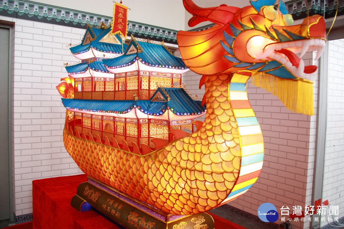 浙江硤石傳統花燈龍舟上有200萬個針孔扎出來。(記者扶小萍攝)