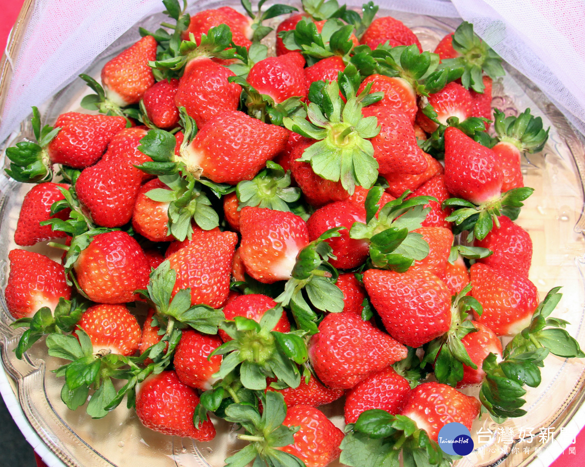 大湖草莓鮮紅欲滴,令人垂涎。(記者許素蘭/攝)