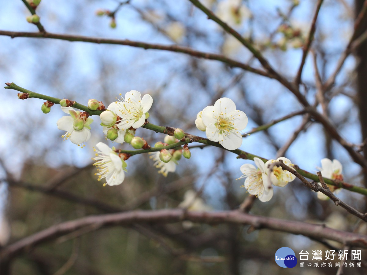 目前士林官邸公園的梅樹約開2-3成,志成公園約開4-5成,歡迎民眾把握盛開時光,前往欣賞梅花盛開美麗景緻。
