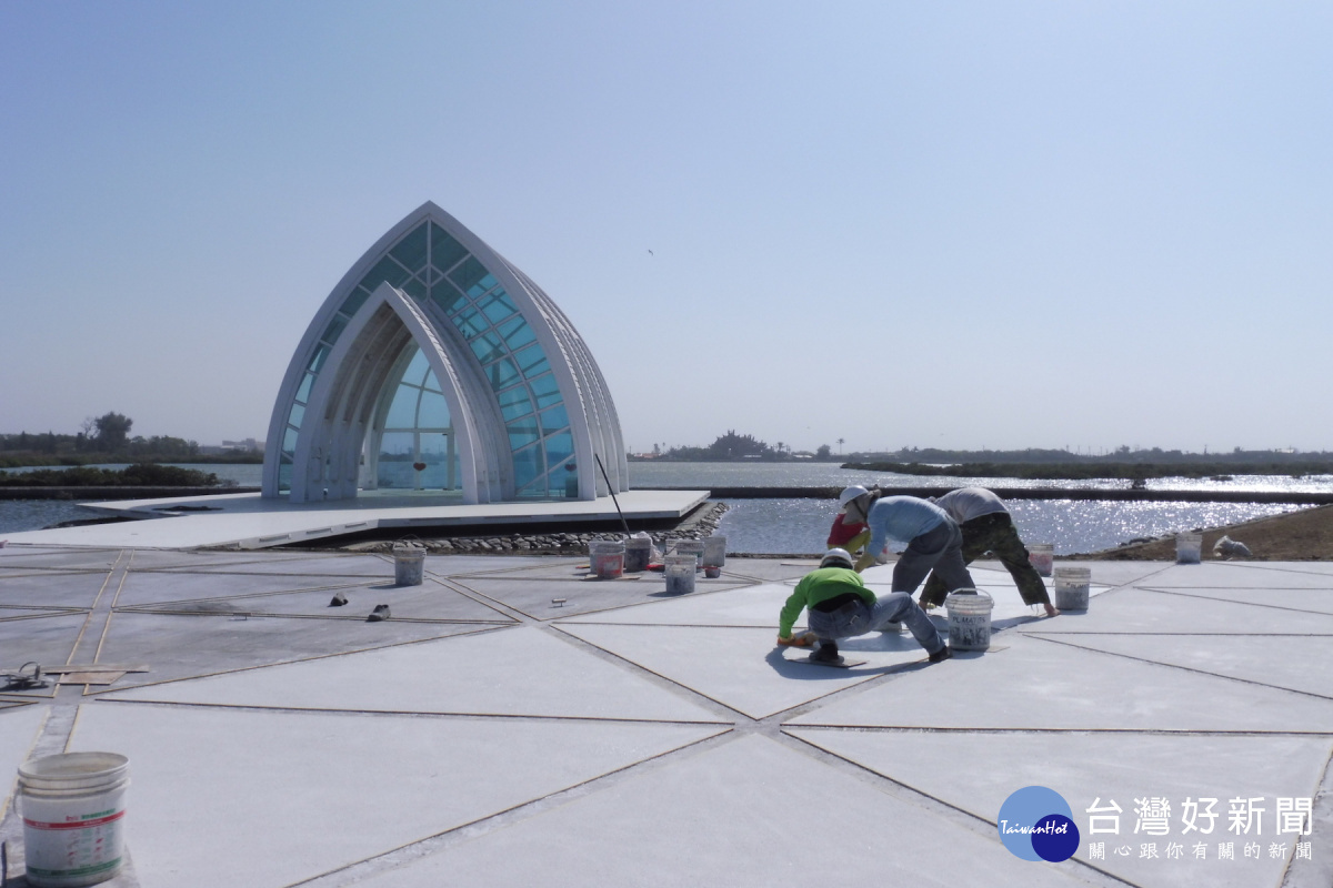 相關單位指出,北門鹽分地水晶教堂周邊景觀綠美化和服務設施改善工程預計動支1500萬元,從今年7月開始執行周邊景觀綠美化及服務設施改善工程,目前工作進度是地面整修工程,前往旅遊的準新人說,完竣後將讓遊客和新人看到不一樣的水晶教堂,而是有「增」婚氛圍。