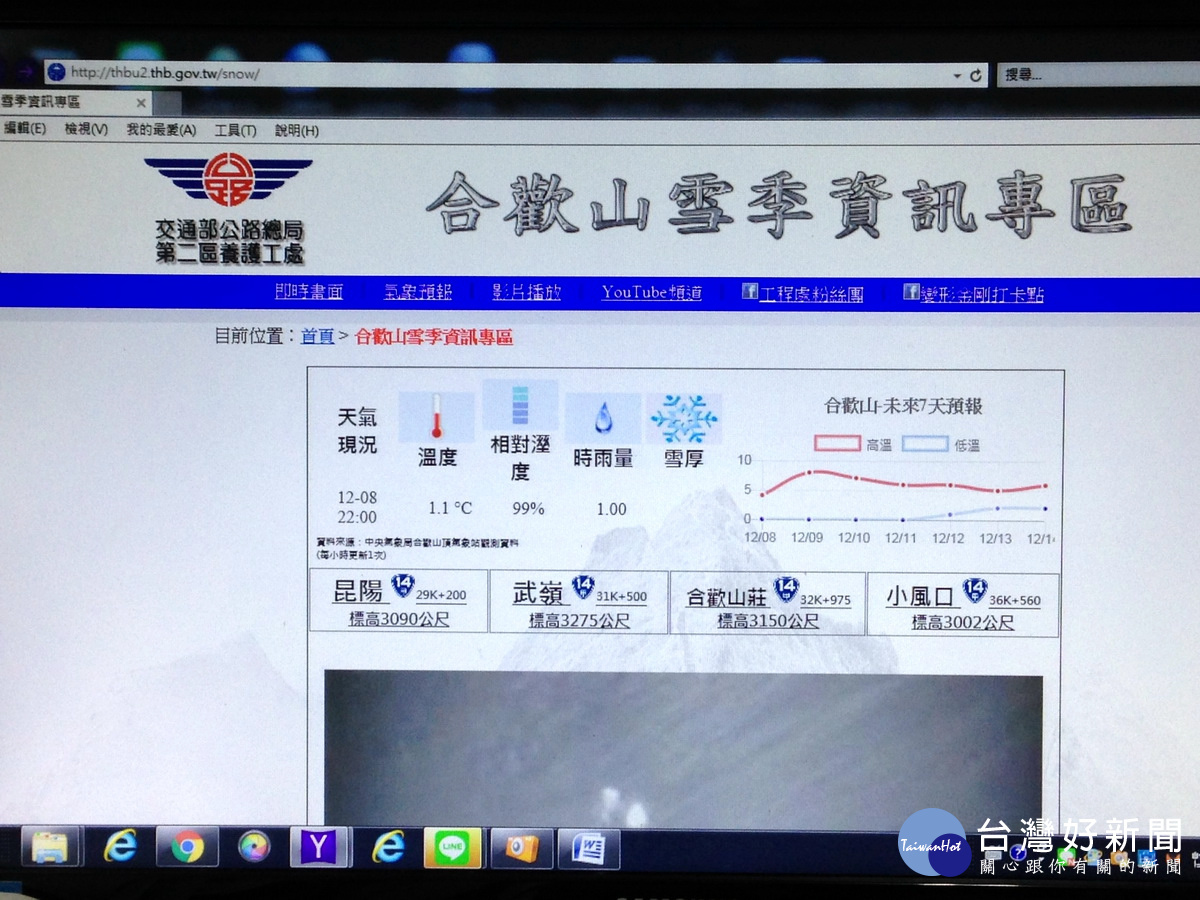 「合歡山雪季資訊專區」 提供民眾賞雪熱點CCTV即時影像