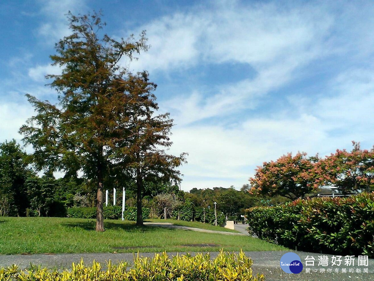 公園處表示,落羽松是杉科的大型落葉喬木,株高可達50公尺,原產於北美濕地及沼澤地,喜好較冷涼的生長環境,生長適溫為13至26度C,葉片柔細狀似羽毛呈鮮綠色,葉背則帶白色的色澤,樹形及葉色都很漂亮。在春天長出嫩芽時,葉片的顏色為淺綠色,而後隨夏天來臨慢慢轉為深綠色,入秋後,葉片會慢慢轉至紅褐色,而冬季時葉片則會全部掉落,葉色隨四季變化,相當特別,是個可以創造四季不同景緻的良好植物素材。