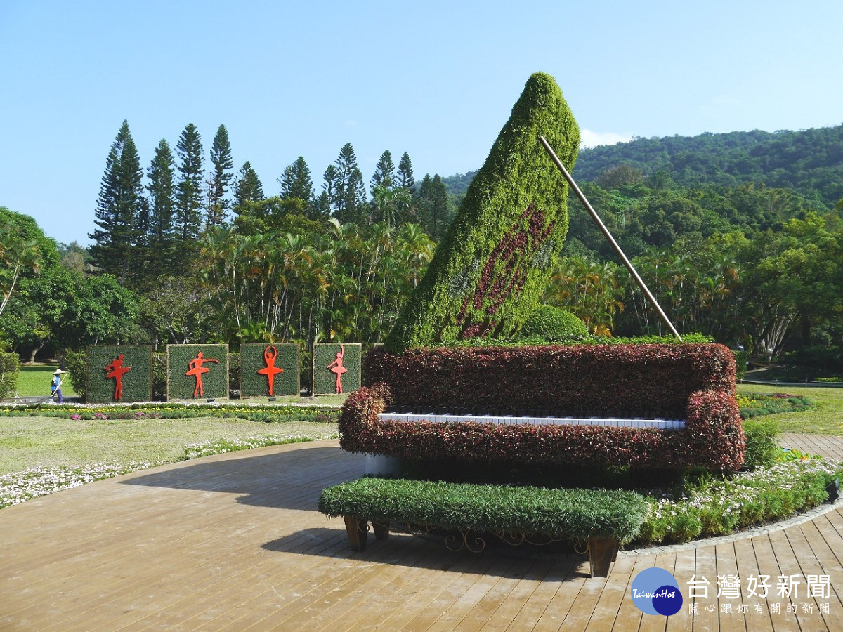 鋼琴綠雕搭配曼妙舞者的綠牆剪影(圖/公園處提供)