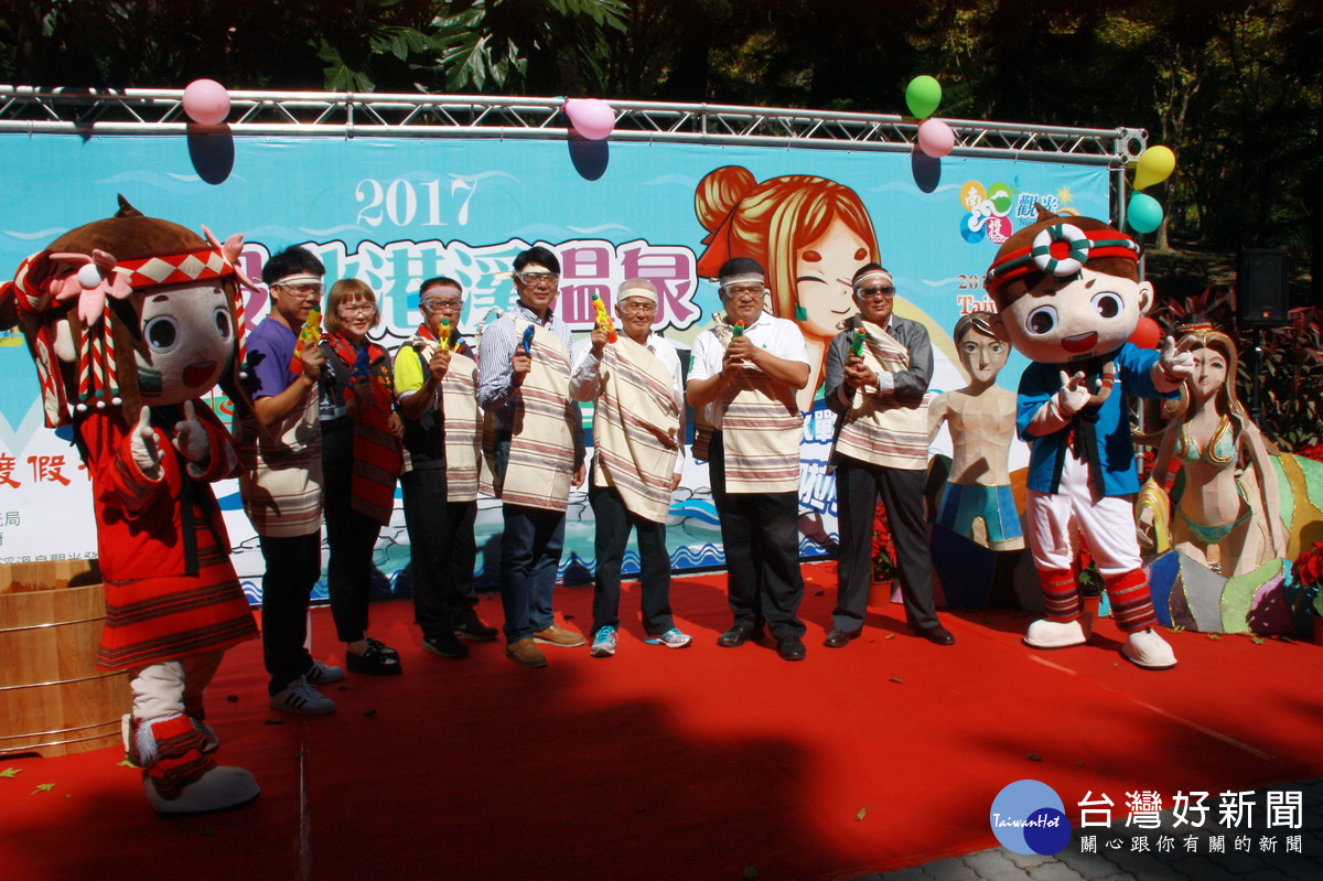 縣府觀光處長王源鍾、溫泉觀光協會理事長李吉田等與來賓宣告北港溪溫泉季11日登場。(記者扶小萍攝)