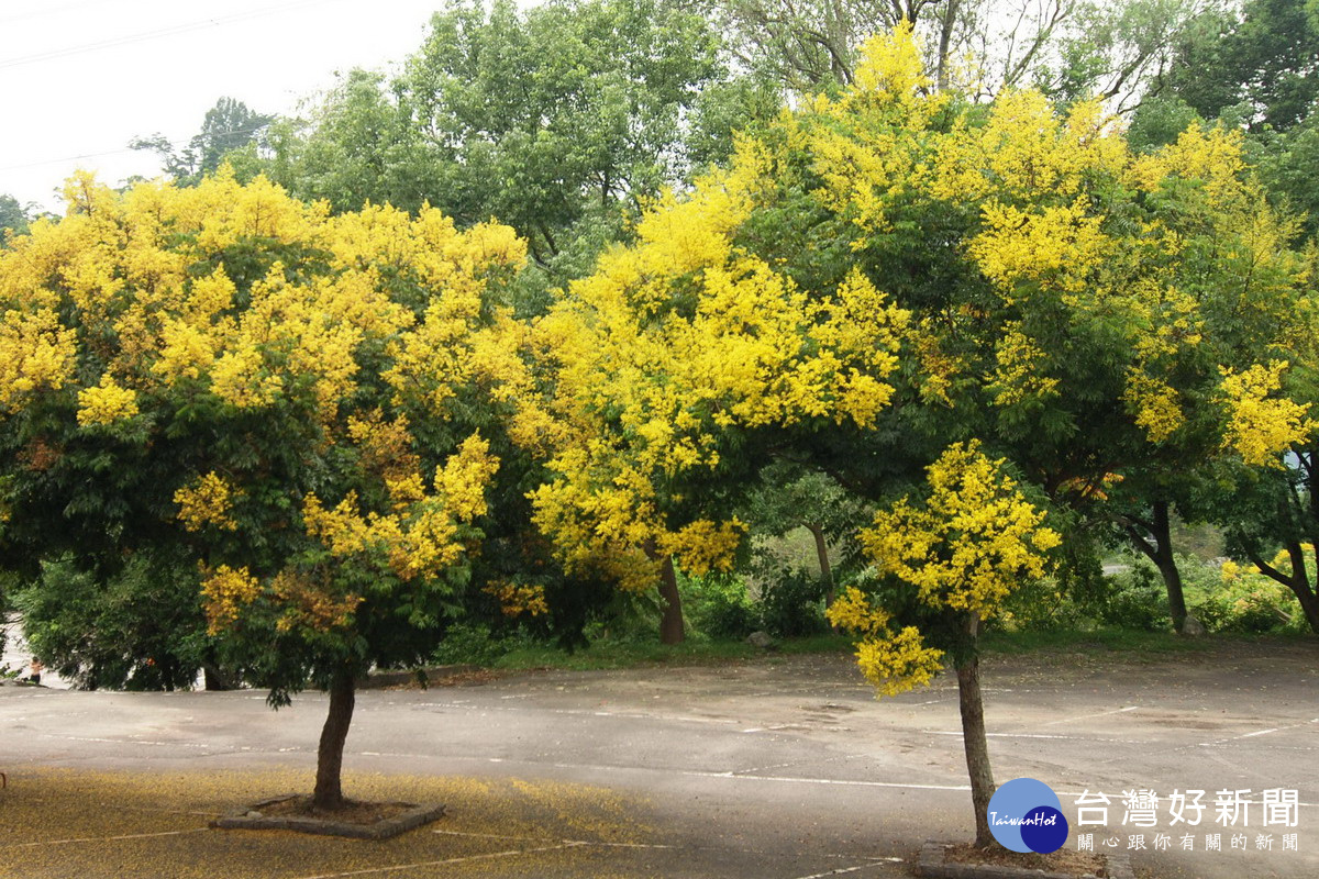 場長柯杏宗表示,園區內的台灣欒樹正在綻放蒴果,可看到樹木的樹頂開著柔黃色、褐色的圓錐蒴果,有如金雨灑落的美景。光彩燦爛的黃色蒴果佈滿枝頭,美不勝收,尤其落了一地的黃色蒴果,更是漂亮;這些台灣欒樹剛好栽種在露營烤肉區的停車場上,許多民眾都喜歡坐在台灣欒樹下烤肉,都說別有一番風趣。