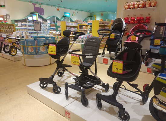 北京某母嬰用品店出售的四輪“遛娃神器”。董雅婷攝