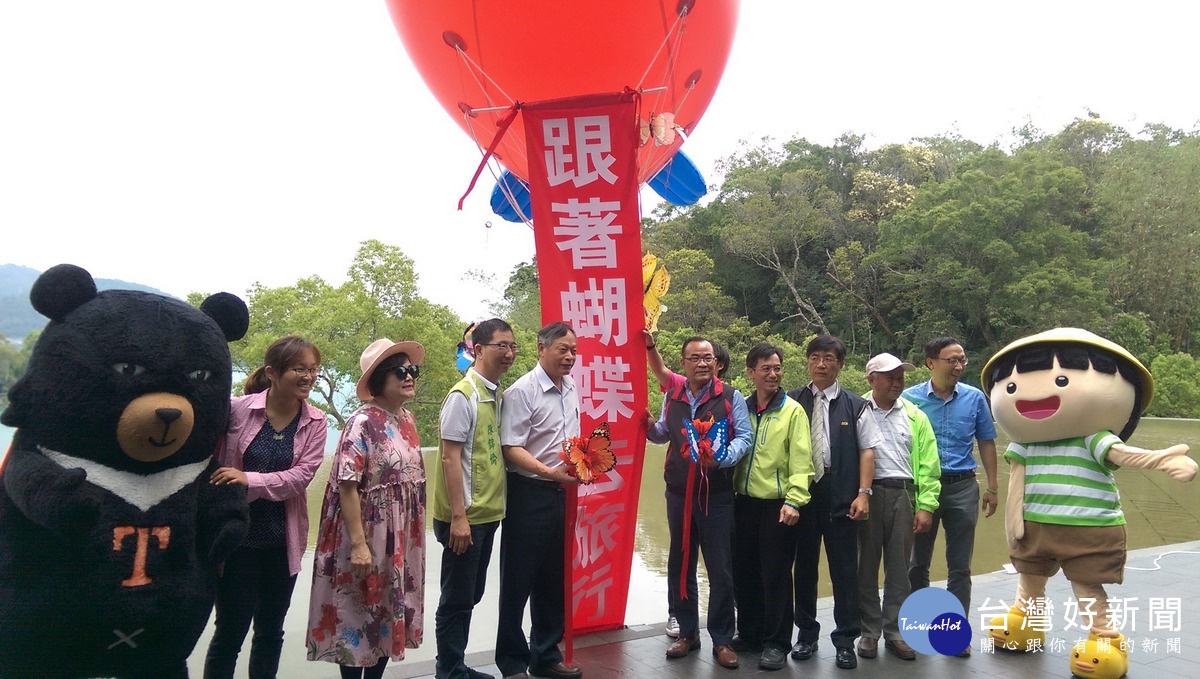 行政院農業委員會水土保持局南投分局、台中分局暨觀光局日月潭國家風景區管理處,19日於日月潭向山遊客中心舉行「農村四季‧生命之歌-跟著蝴蝶去旅行」開幕記者會,並透過簽署保育當地蝴蝶生態的宣言,共同合作推動友善生態環境的深度旅遊。