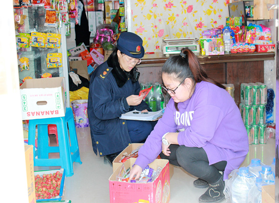 3月18日,吉林省市場監管廳召開會議,部署排查整治工作。圖為執法人員在校園周邊食品店進行檢查。羅金玉攝