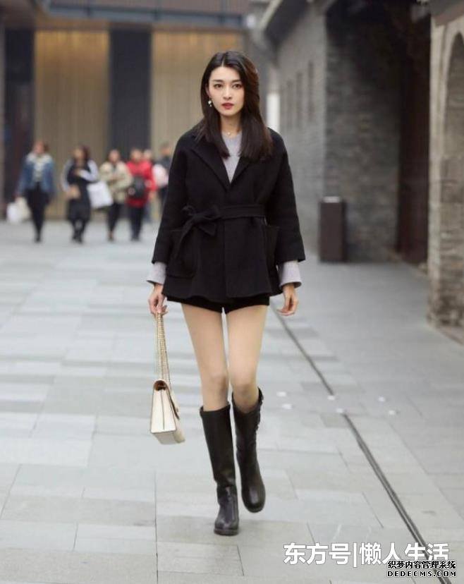 身材嬌小的圓臉美女,拎着五顏六色的購物袋,輕盈地走在大街上。她身穿黑色圓點上裝和暗藍色牛仔短褲,腳下穿着黑色露趾涼鞋,看起來很有女人味。