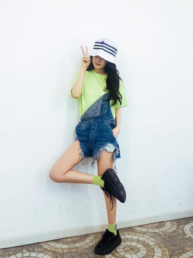 咱們先來看看楊冪的這一套可愛俏皮的私服造型,穿起了今年大熱的牛油果綠,簡直就是少女本人!特別是這件搶鏡的T恤搭配上弔帶牛仔短褲,從版型到設計,風格明顯比過往的look輕鬆了許多。特別是隨意帥氣的下擺剪裁,也只有楊冪這種細腿美女才能hold得住了~