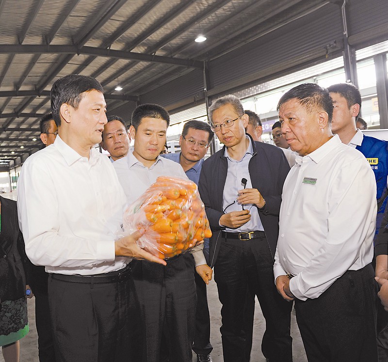 調研期間,肖亞慶深入基層監管所,實地走訪農產品批發市場、食品企業生產車間、學校食堂和生活超市,與一線工作者和部分消費者進行溝通交流,調研了解整治行動情況。