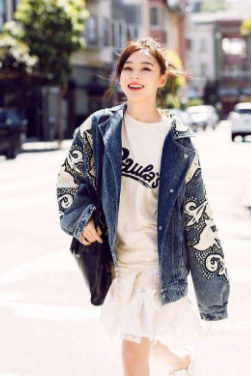 1、牛仔外套搭配短裙
