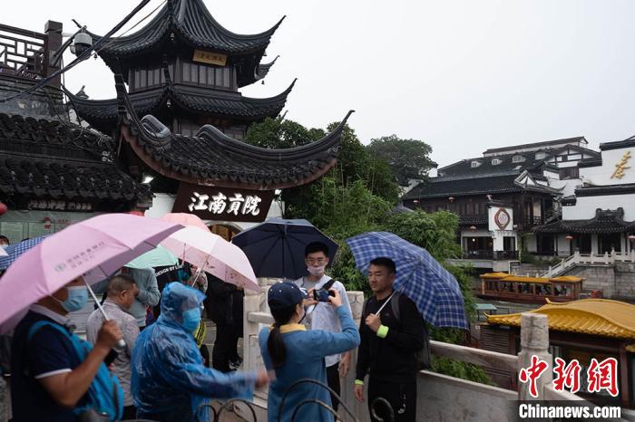 10月4日,市民和遊客冒雨在南京夫子廟景區內品美食、游秦淮河、參觀夫子廟,感受明清科舉文化。