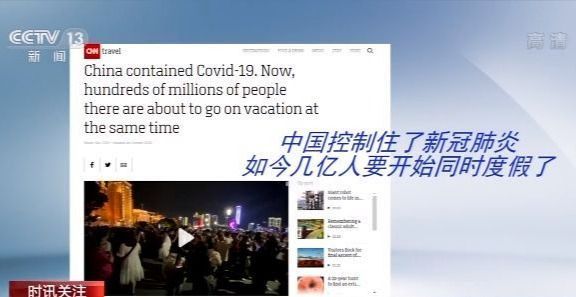 在一篇題為“中國控制住了新冠肺炎,如今幾億人要開始同時度假了”的報道中,美國有線電視新聞網引用了中國旅遊研究院發布的國慶假期預計全國接待國內旅遊人數數據:5.5億人次,並將黃金周的旅遊熱潮總結為疫情得到控制的“自信體現”。報道說,在今年年初的新冠疫情發生之後,中國在3月基本控制住了疫情,並通過嚴格的封鎖隔離、大規模病毒檢測等措施,迅速控制了後來的零星小規模疫情。報道還拿中國的情況和歐美國家進行了一番對比。報道說,如此短時間內的大規模人口流動,在其他地方是“難以想象”的,因為那些地方的政府“仍在為控制疫情而苦苦掙扎”。