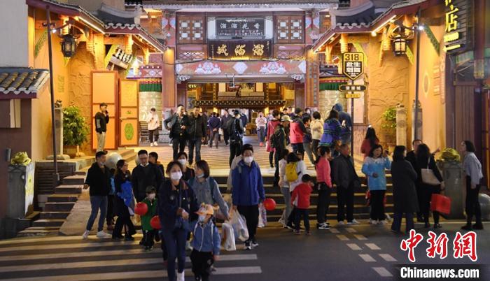 夜幕降臨,康定城區溜溜城遊客多。 劉忠俊 攝