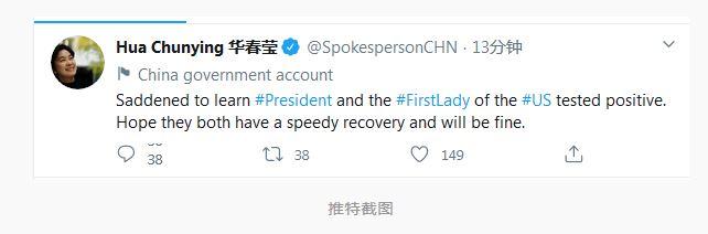 【環球網報道】剛剛,中國外交部發言人華春瑩發推特回應特朗普及其夫人新冠病毒檢測呈陽性。