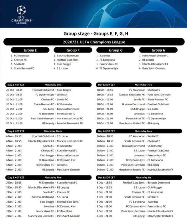 新賽季歐冠全部小組賽將在北京時間10日凌晨結束。決賽日期為當地時間2021年5月29日。(完)