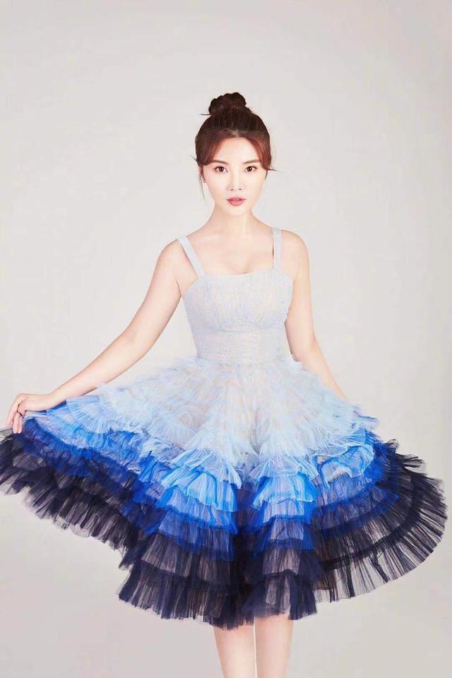 徐冬冬新年寫真,藍色漸變蛋糕裙