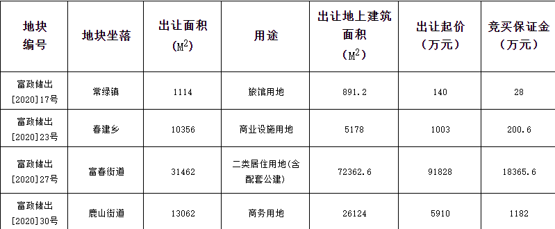 地塊編號富政儲出[2020]27號,地塊名稱為富春63號地塊,出讓面積3.15萬平,土地用途為住宅用地,容積率2.3,建築面積7.24萬平,起始價9.18億元。