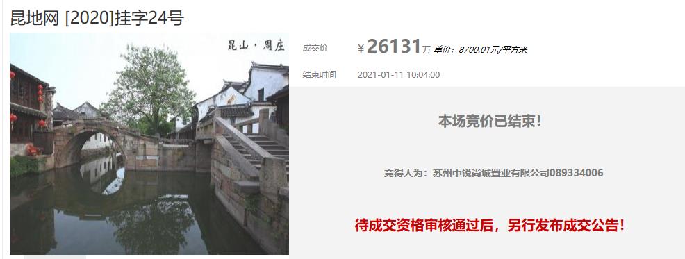 中銳2.61億元競得蘇州崑山1宗住宅用地