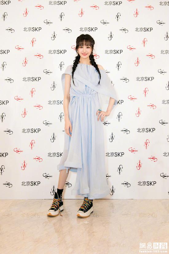 被爆出和男友張恆后,昨日首次出席某活動,一襲水藍色仙氣十足,雙麻花辮俏皮可愛,美貌營業。