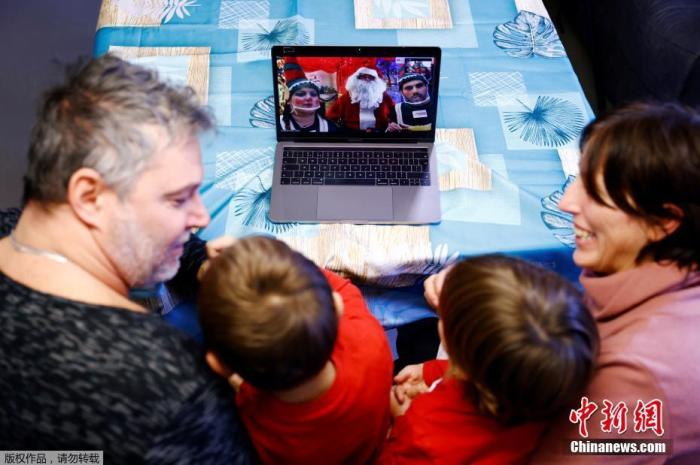 - 資料圖:當地時間12月8日,在意大利羅馬,一個裝扮成聖誕老人的男子通過網絡直播跟孩子們互動。
