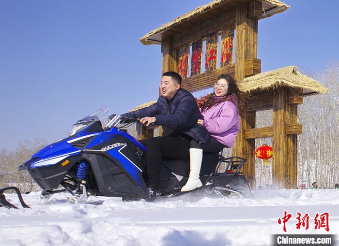 沿江村村民載着遊客體驗雪地摩托。(資料圖) 撫松縣委宣傳部供圖 攝