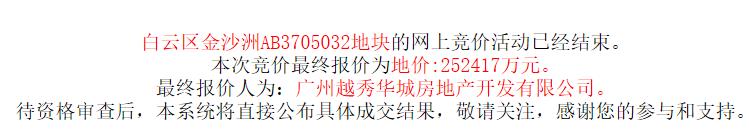 越秀25.24億元競得廣州白雲區1宗住宅用地