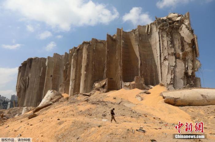 - 當地時間8月7日,黎巴嫩貝魯特,黎巴嫩軍人走過在爆炸中受損的糧倉。