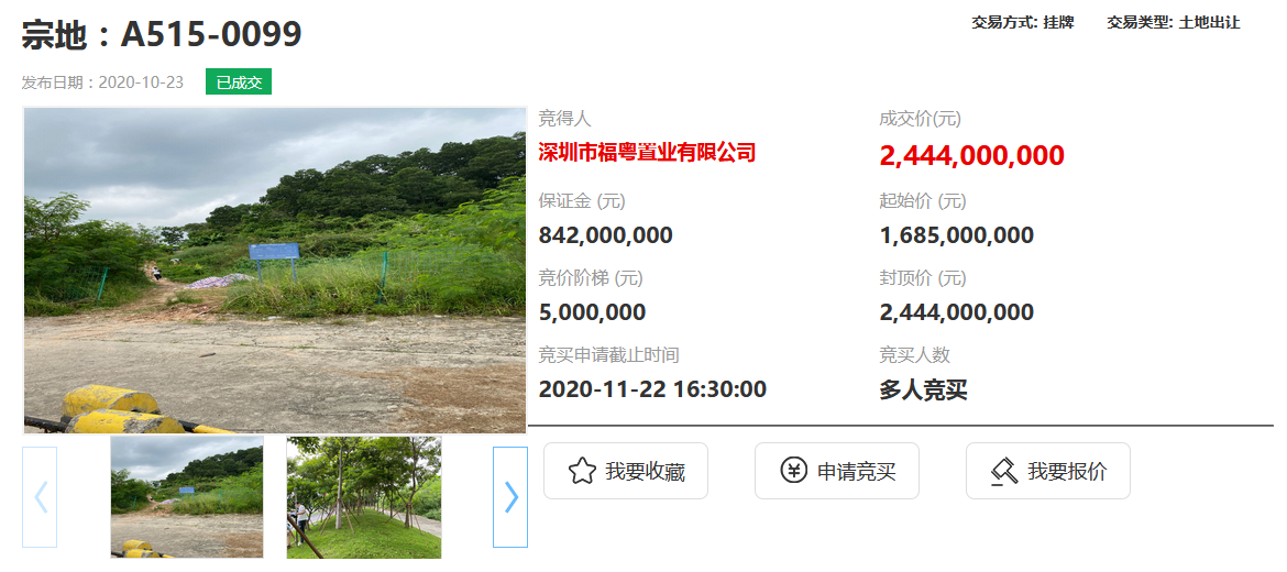 經過29輪競價,深圳市福粵置業有限公司(中國電建地產)以上限價格24.44億元競得A515-0099地塊,溢價率45.04%,配建人才房面積29000㎡。