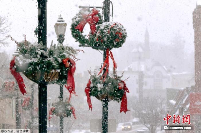- 當地時間12月5日,馬薩諸塞州馬爾伯勒市區,大雪落在節日裝飾品上。