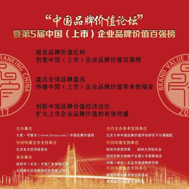曾幾何時,世界品牌價值高地一直由國外發達經濟體佔據,影響世界經濟的品牌價值評估體系評估標準皆由國外發達國家創立,在世界級的品牌影響力排行中很難發現中國聲音。隨着中國經濟的迅猛發展,中國國力的顯著提升,國內市場經濟對品牌價值建設成長的需求日益強烈。本土品牌價值評估體系的建立與發展乃品牌建設的當務之急,樹立中國品牌價值的國際影響力勢在必行。一石激起千層浪,“大觀・可惟為(www.bvrcn.com)品牌價值(中國)網”勇立潮頭,積極探索實踐,補充市場缺失,依靠多年深耕品牌價值領域的積澱,整合北京大學等權威部門已成功發布四屆中國品牌價值排行榜單,在行業界及社會引起巨大反響。此次更首創並首發中國(上市)企業品牌價值排行,率先提出了證券品牌版的概念,邁出了本土榜單走向世界創新世界影響力的重要一步。