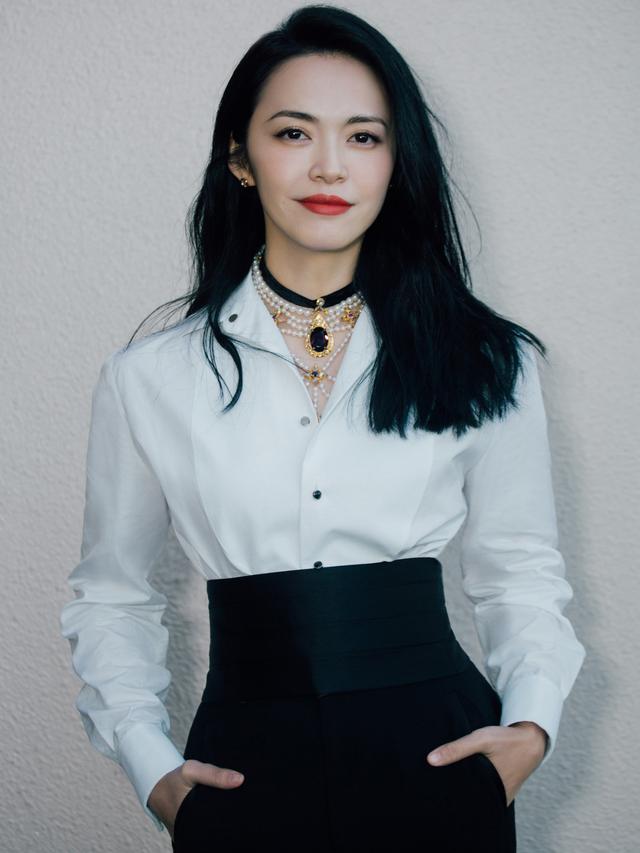 如果單單是這樣的一件白襯衫,不免顯得過於單調,所以姚晨巧妙地用配飾來豐富了整個造型,增添了一抹別樣的層次感。當然,脖子間的配飾的選擇也是很有新意的,一根黑色的大寶石chocker疊帶上多層次的珍珠項鏈,不僅凸顯了姚晨的高級優雅,而且給她增添了一份貴氣。