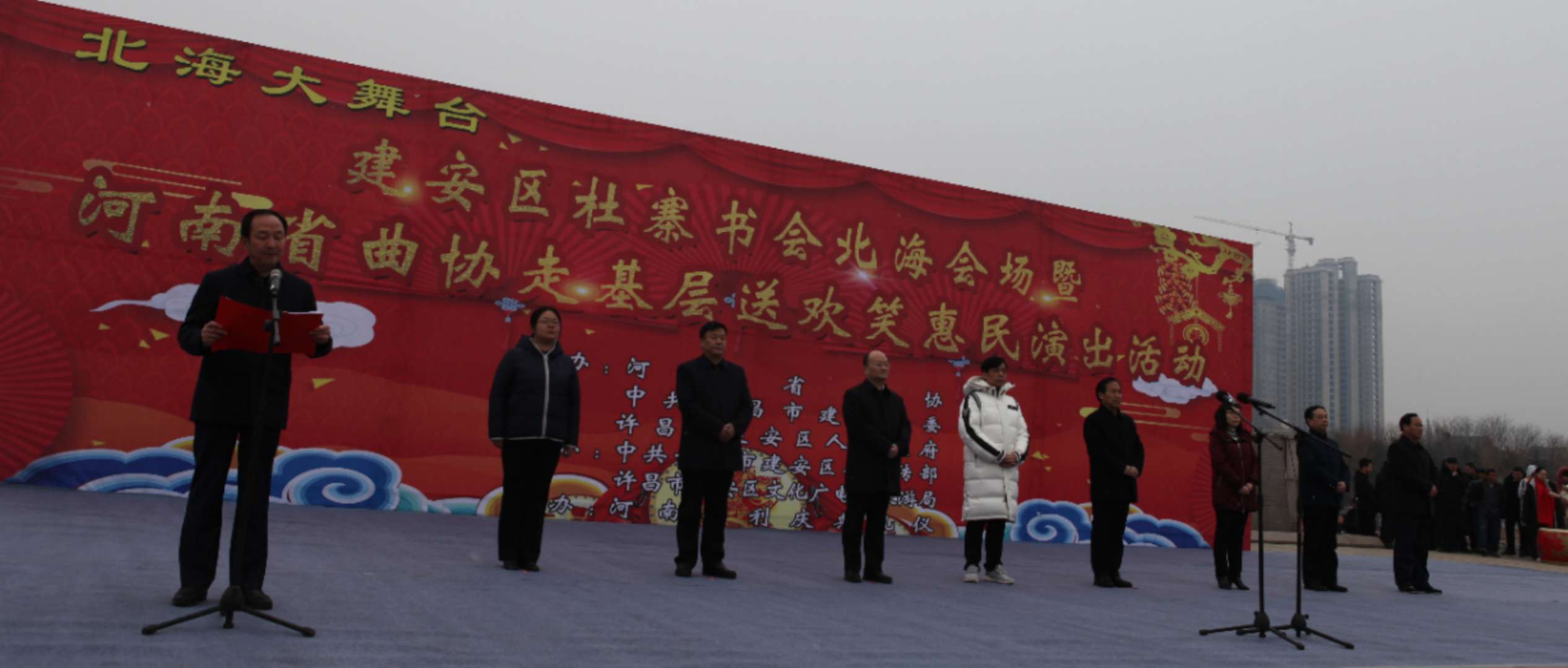 活動啟動儀式現場人山人海,2019年建安區“紅紅火火過大年”之元宵節系列活動在杜寨書會北海會場暨河南省曲協“走基層送歡笑”惠民演出中正式拉開了序幕。舞台上曲藝名家的精彩表演贏得現場掌聲不斷,歡笑不停,整個活動現場都洋溢着祥和喜慶的氣氛,為白雪映襯下聖潔美麗的北海增添了絢麗的色彩。